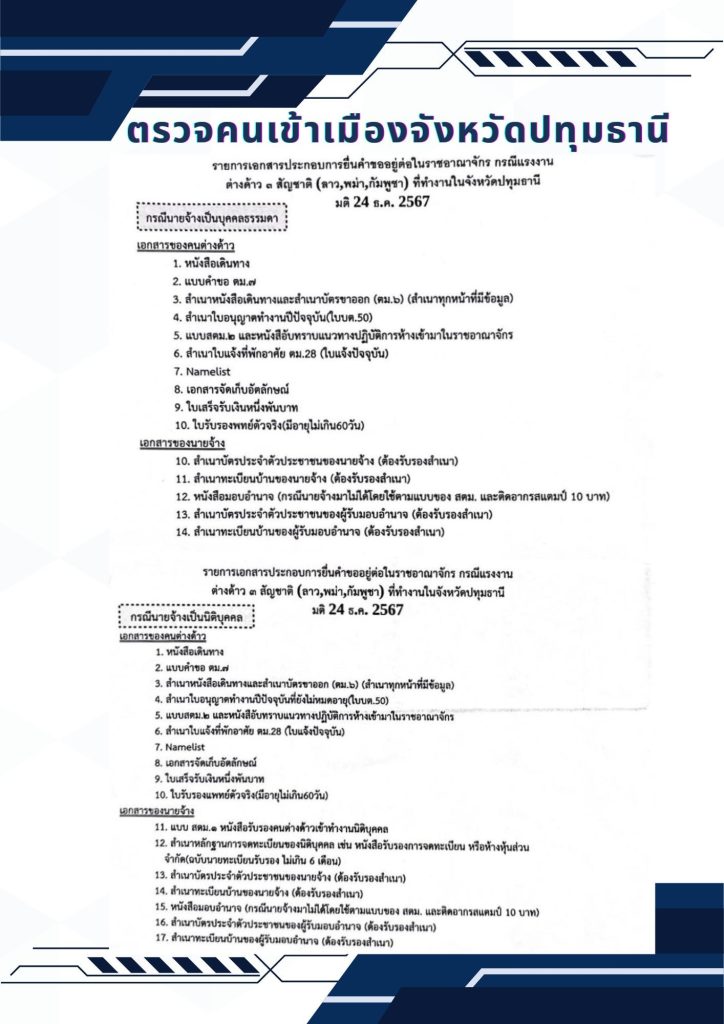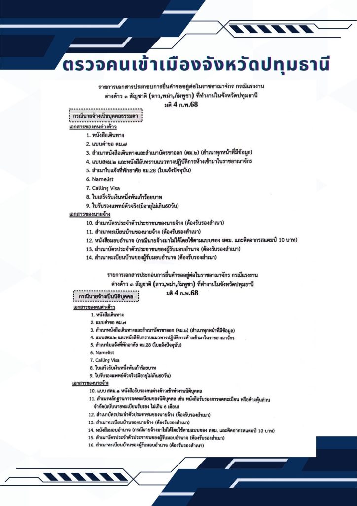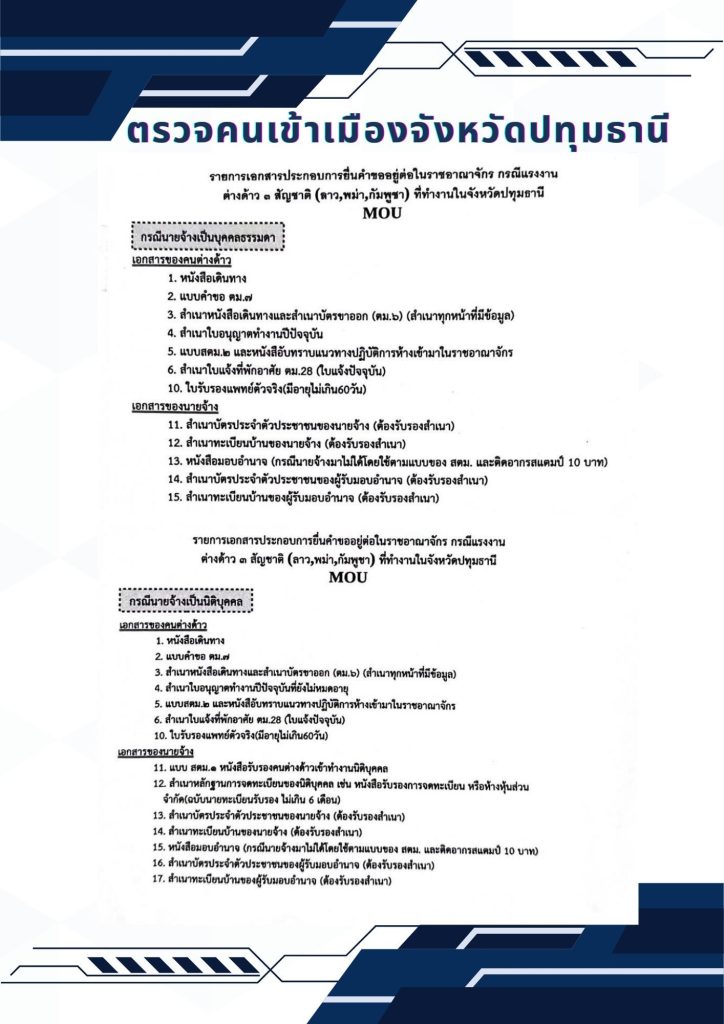 รายการเอกสารประกอบการยื่นคำขออยู่ต่อแรงงานต่างด้าว 3 สัญชาติ