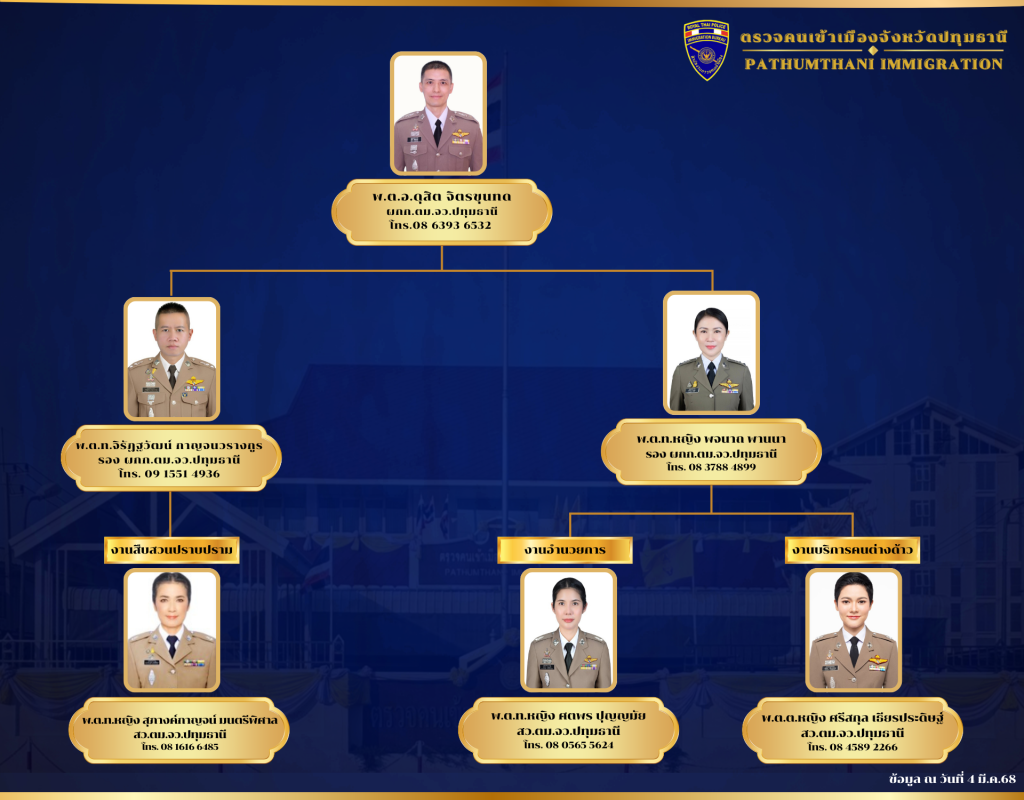 ข้อมูลผู้บริหาร ตรวจคนเข้าเมืองจังหวัดปทุมธานี