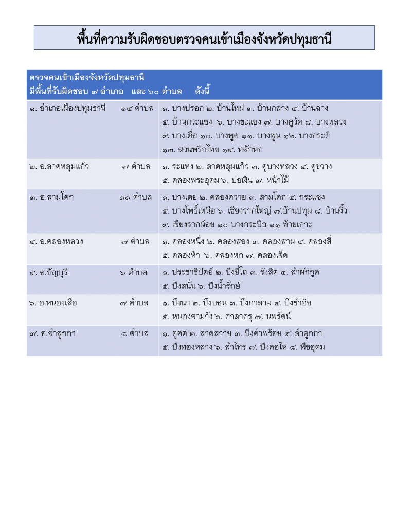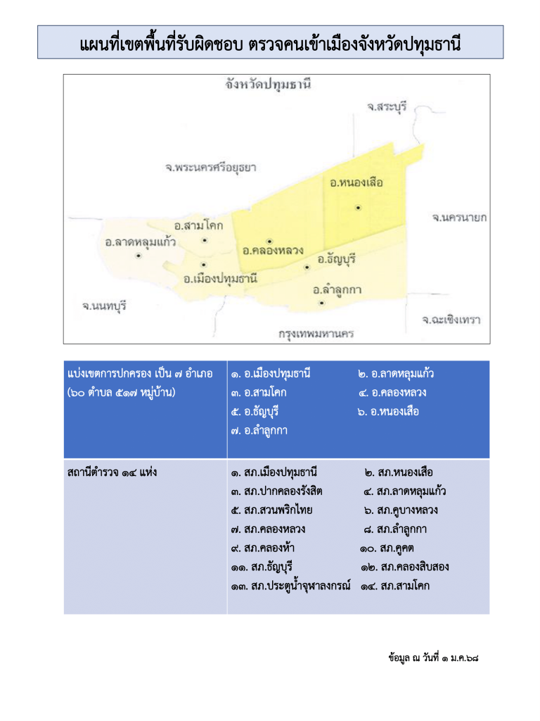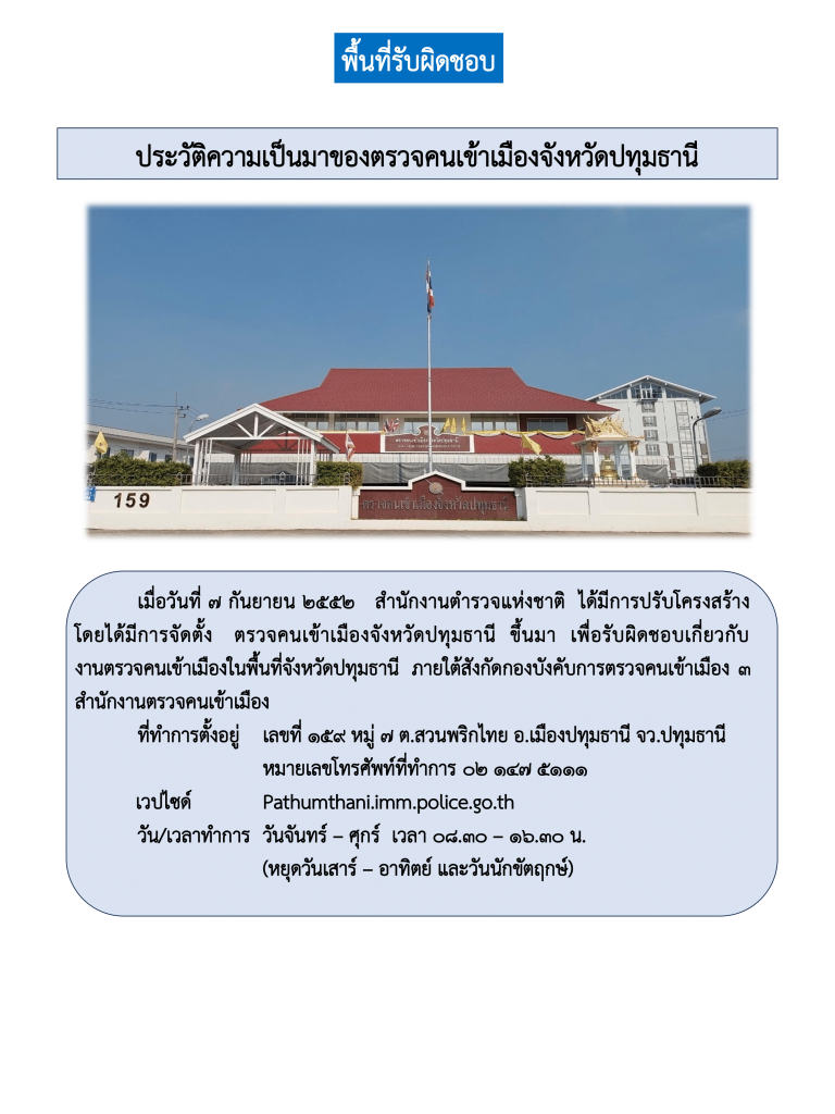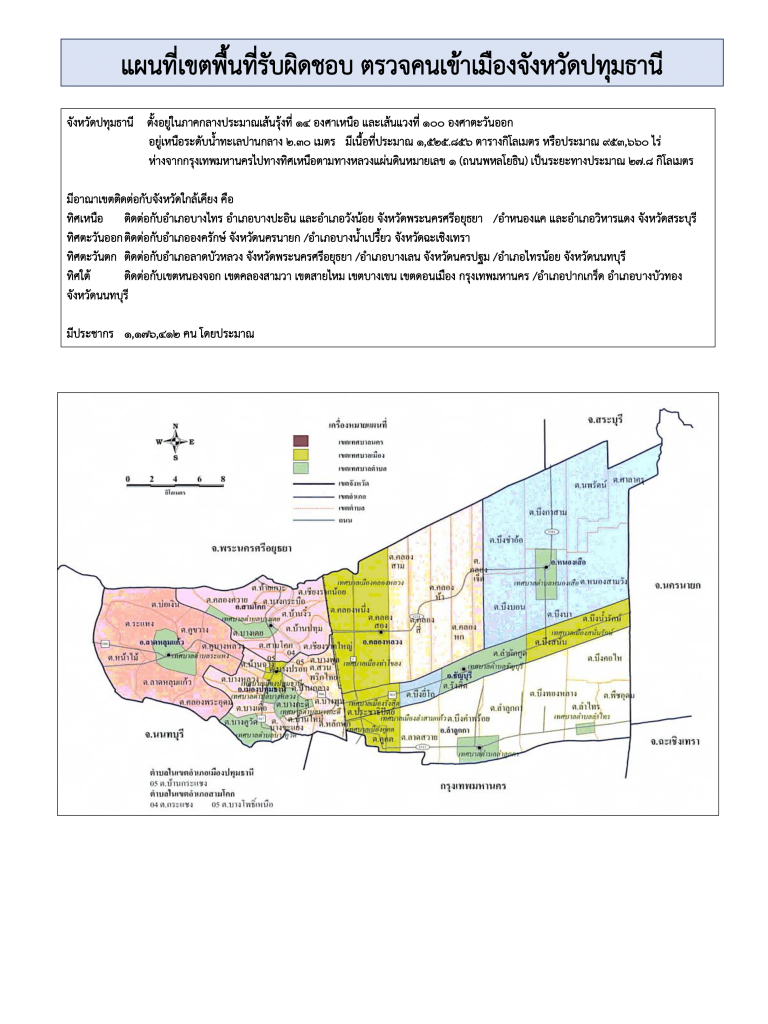 พื้นที่รับผิดชอบ ตรวจคนเข้าเมืองจังหวัดปทุมธานี